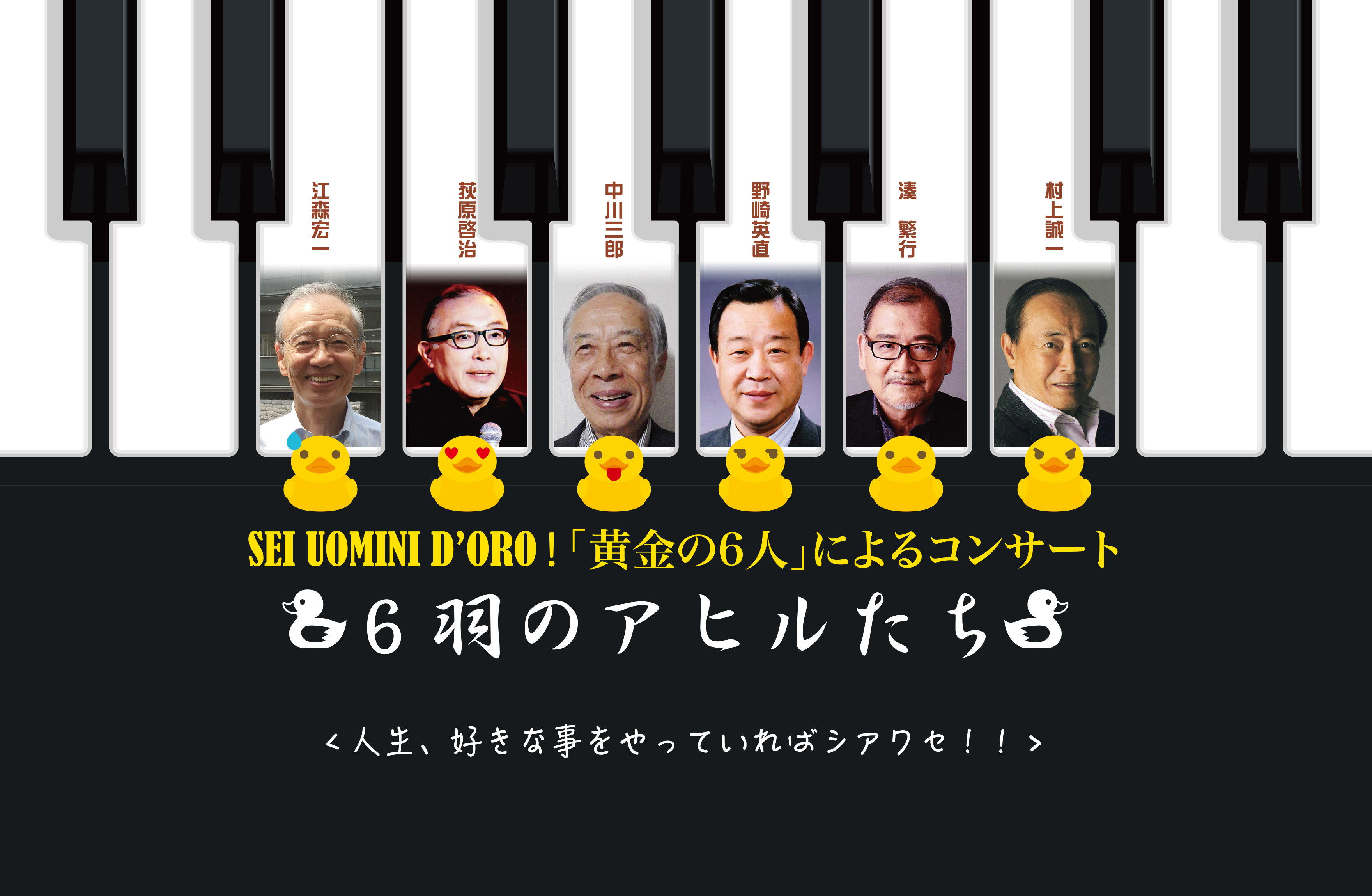 11月25日(金)、銀座ヤマハスタジオにて、スタジオの男性6人によるコンサートがございます 松本のサイト冒頭にも登場しますが、フライヤーに記載されている詳細 「いつかはやってしまおう!」と、6人の念願かなってのコンサー… 11/25(金) 「黄金の6人による」6羽のアヒルたち・コンサート
